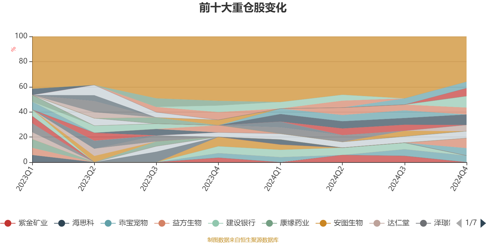 截至2024年末,基金十大重仓股分别是比亚迪、东鹏饮料、海尔智家、宁波银行、美的集团、赛轮轮胎、中国海油、乖宝宠物、德业股份、渝农商行。