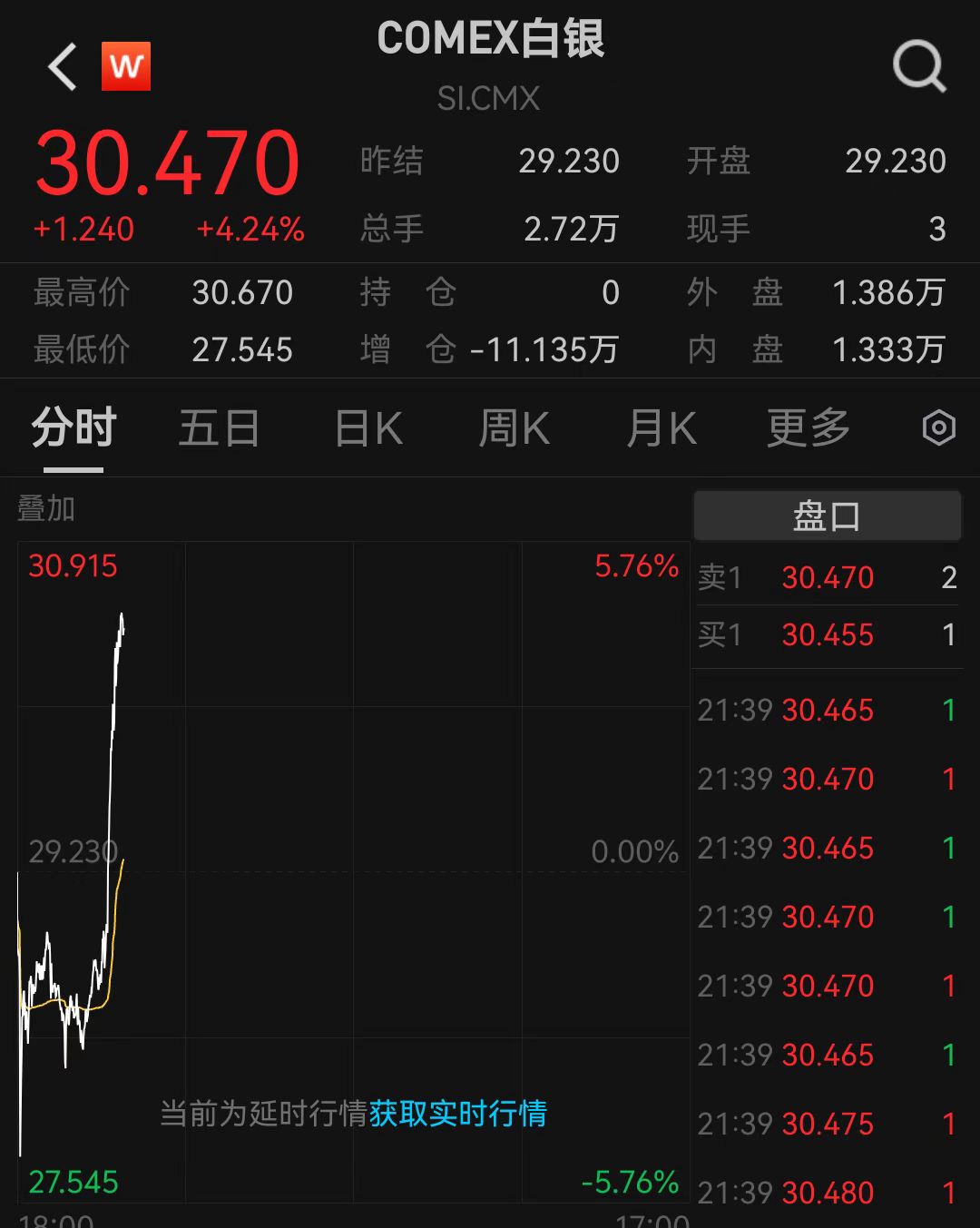 贵金属逆市上涨,COMEX白银盘中跌逾5%,后直线拉升涨超4%,报30.47美元/盎司。COMEX黄金盘中跌至1.66%,随后快速翻红。