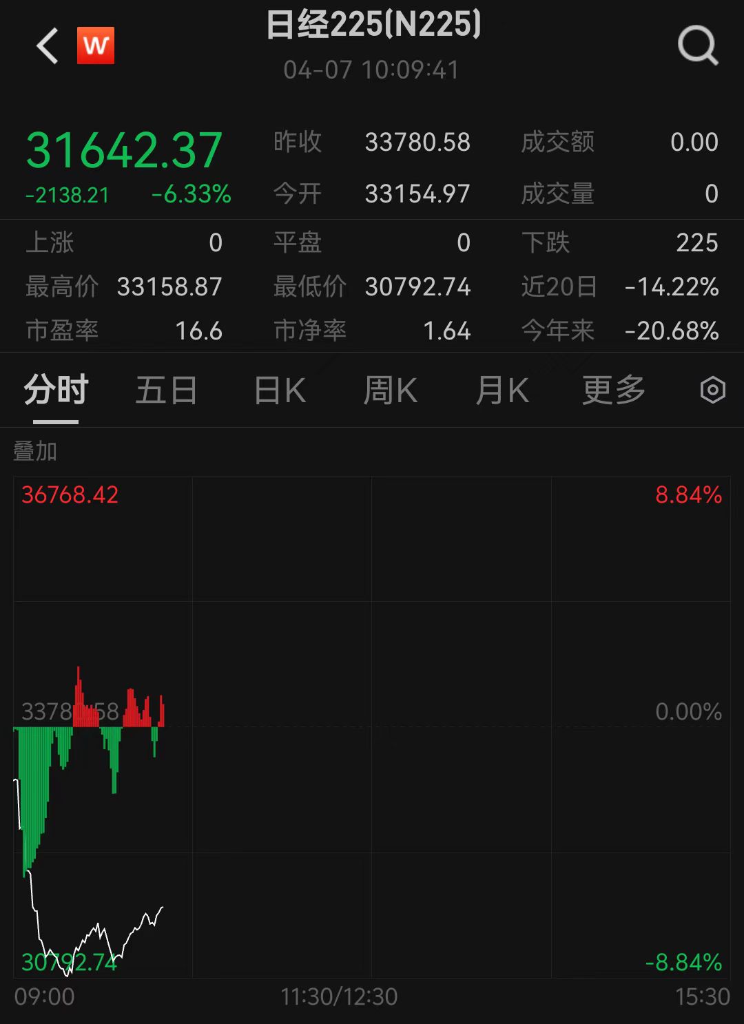 亚太股市开盘大跌,日经225指数一度跌至8.84%,下挫近3000点,东证指数期货一度跌至9.62%,后有所回升。