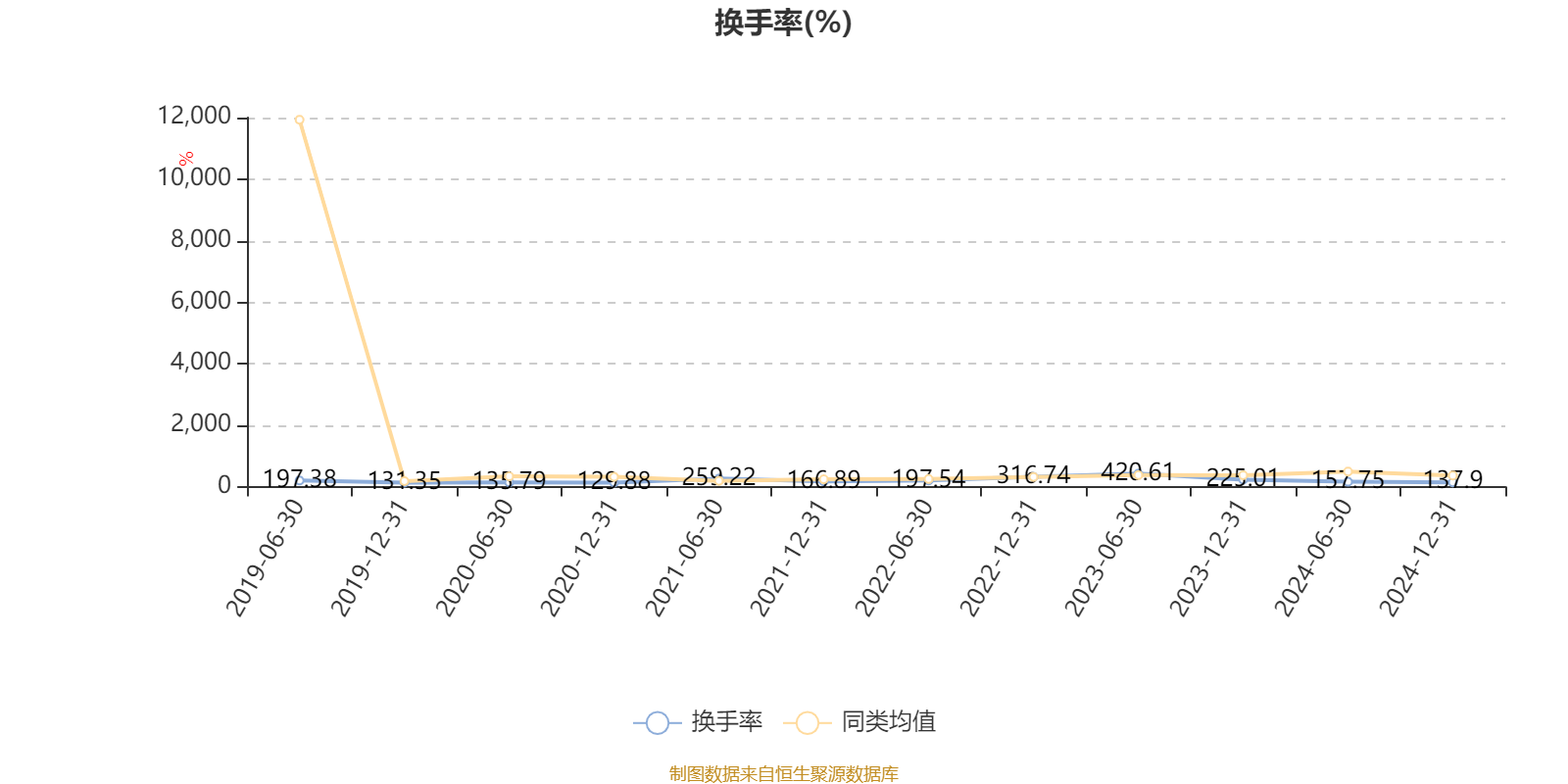 截至2024年12月31日,基金最近一年换手率约311.58%,持续1年低于同类均值。