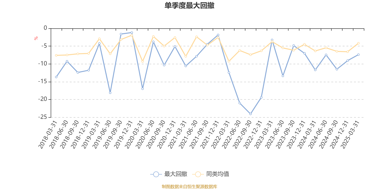 通过所选区间该基金净值增长率分位图,可以观察该基金与同类基金业绩比较情况。图为坐标原点到区间内某时点的净值增长率在同类基金中的分位数。