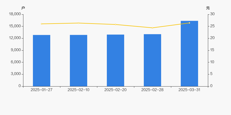 自2025年1月27日以来,公司股东户数连续4期上涨,截至目前增幅为27.56%。2025年1月27日至2025年3月31日区间股价上涨1.50%。