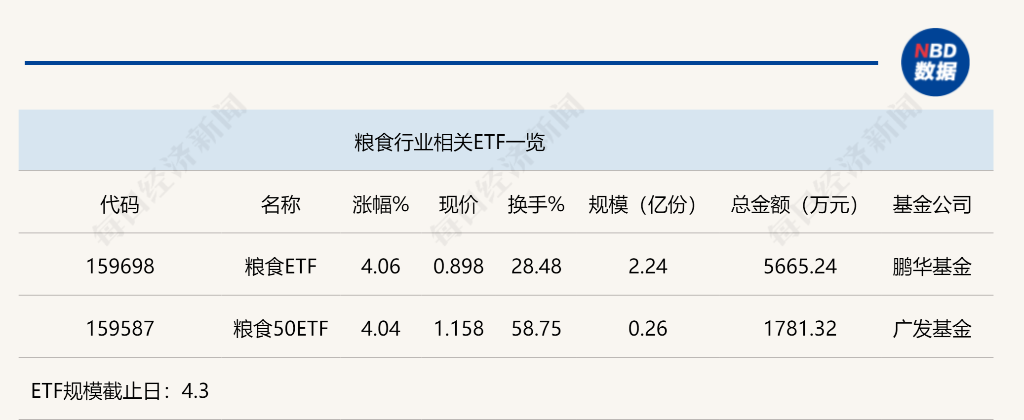 行业ETF风向标丨产业链受益,两只粮食ETF半日涨幅超4%