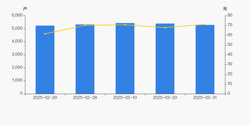 2025年2月20日至今,公司股东户数有所增长,区间涨幅为0.99%。2025年2月20日至2025年3月31日区间股价上涨15.75%。