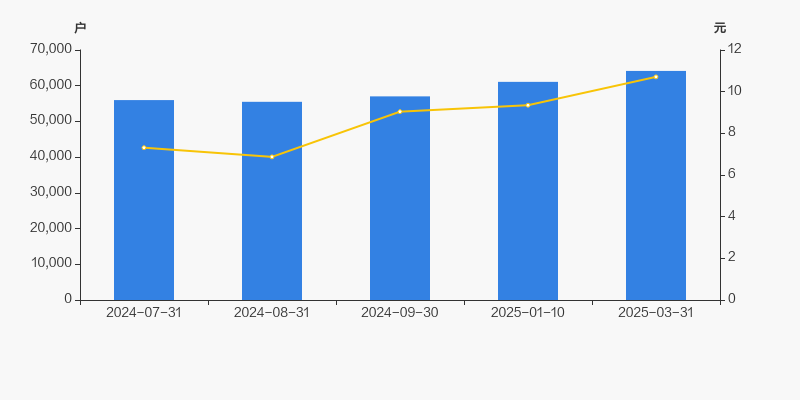 截至2025年3月31日,公司最新A股总股本为6.65亿股,其中流通股本为5.65亿股。户均持有流通股数量由上期的9251股下降至8810股,户均流通市值9.44万元。