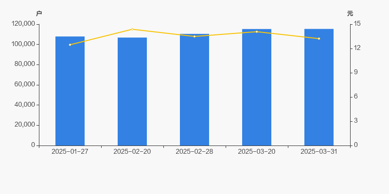 自2025年2月20日以来,公司股东户数连续3期上涨,截至目前增幅为8.01%。2025年2月20日至2025年3月31日区间股价下降8.07%。