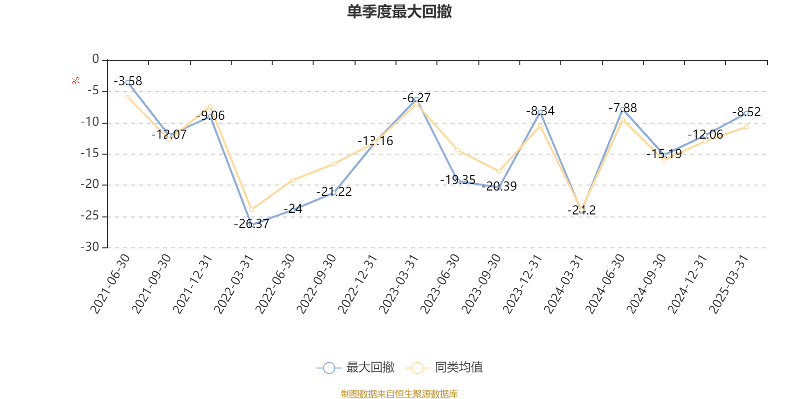 截至4月3日,基金近三年最大回撤为43.94%,同类可比基金排名21/34。单季度最大回撤出现在2022年一季度,为26.37%。