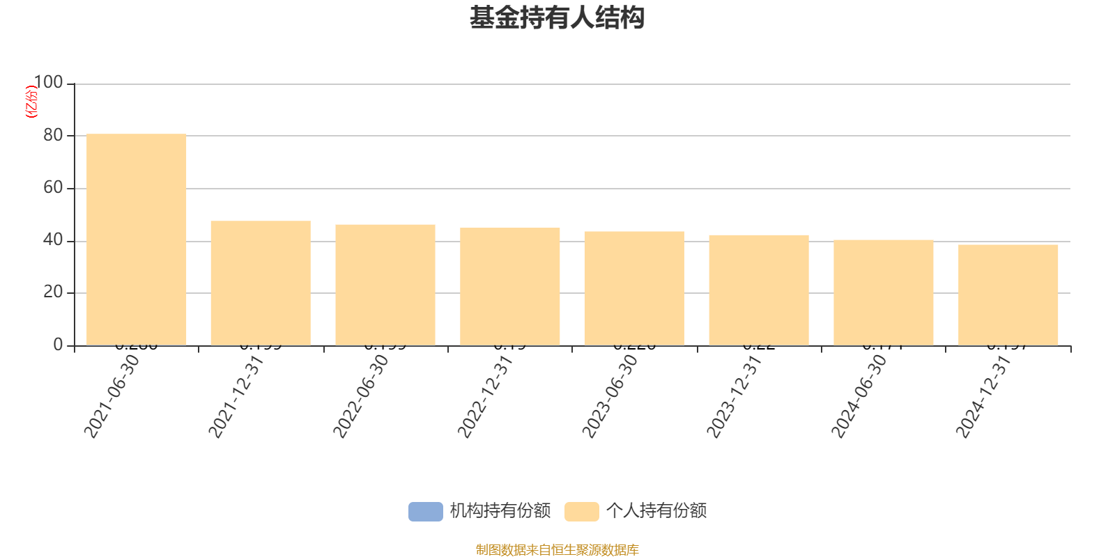 截至2024年12月31日,基金持有人共计6.43万户,合计持有38.5亿份。其中管理人员工持有18.13万份,机构持有份额占比0.51%,个人投资者占比99.49%。