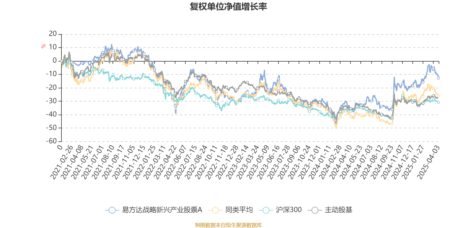 截至4月3日,易方达战略新兴产业股票A近三个月复权单位净值增长率为8.50%,位于同类可比基金21/49;近半年复权单位净值增长率为9.18%,位于同类可比基金26/49;近一年复权单位净值增长率为34.20%,位于同类可比基金10/47;近三年复权单位净值增长率为9.26%,位于同类可比基金10/35。