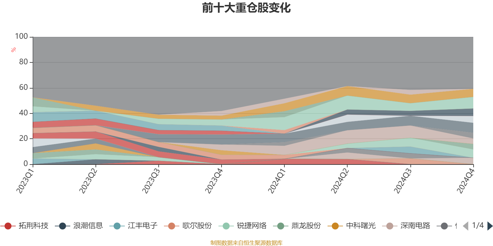 截至2024年末,基金十大重仓股分别是沪电股份、立讯精密、腾讯控股、新易盛、小米集团-W、工业富联、深南电路、海光信息、中际旭创、宁德时代。