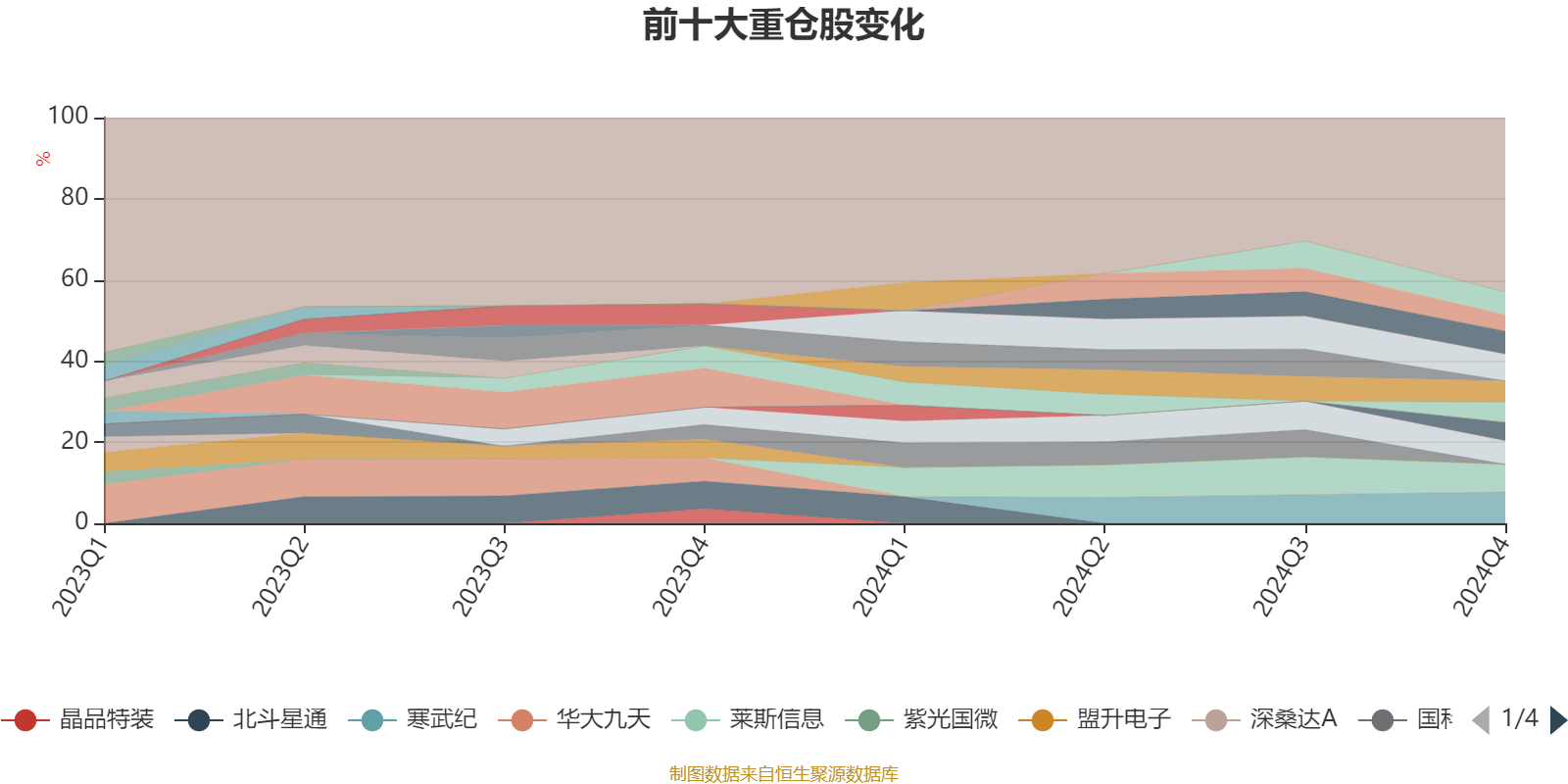 截至2024年末,基金十大重仓股分别是寒武纪、莱斯信息、纳睿雷达、国博电子、致尚科技、经纬恒润、源杰科技、沃格光电、灿芯股份、光迅科技。