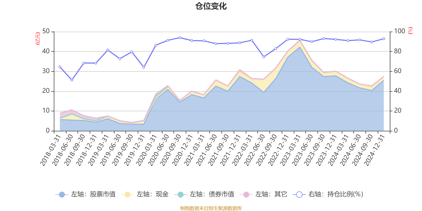 据定期报告数据统计,近三年平均股票仓位为89.48%,同类平均为79.88%。2020年三季度末基金达到93.97%的最高仓位,2018年上半年末最低,为51.28%。