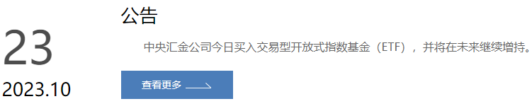 从历史来看,除今天之外,2023年10月以来,中央汇金官网共发布了两次关于交易型开放式指数基金(ETF)增持的公告。