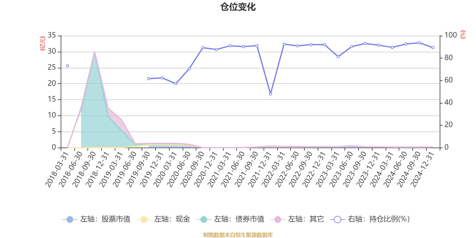 据定期报告数据统计,近三年平均股票仓位为90.73%,同类平均为79.88%。2024年三季度末基金达到93.67%的最高仓位,2021年末最低,为47.94%。
