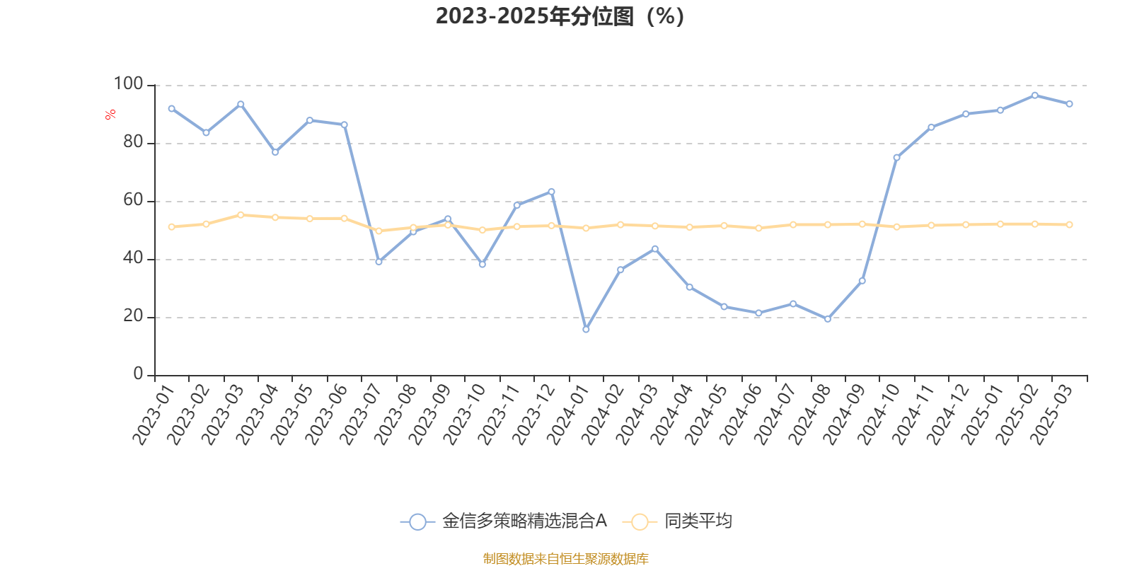 通过所选区间该基金净值增长率分位图,可以观察该基金与同类基金业绩比较情况。图为坐标原点到区间内某时点的净值增长率在同类基金中的分位数。