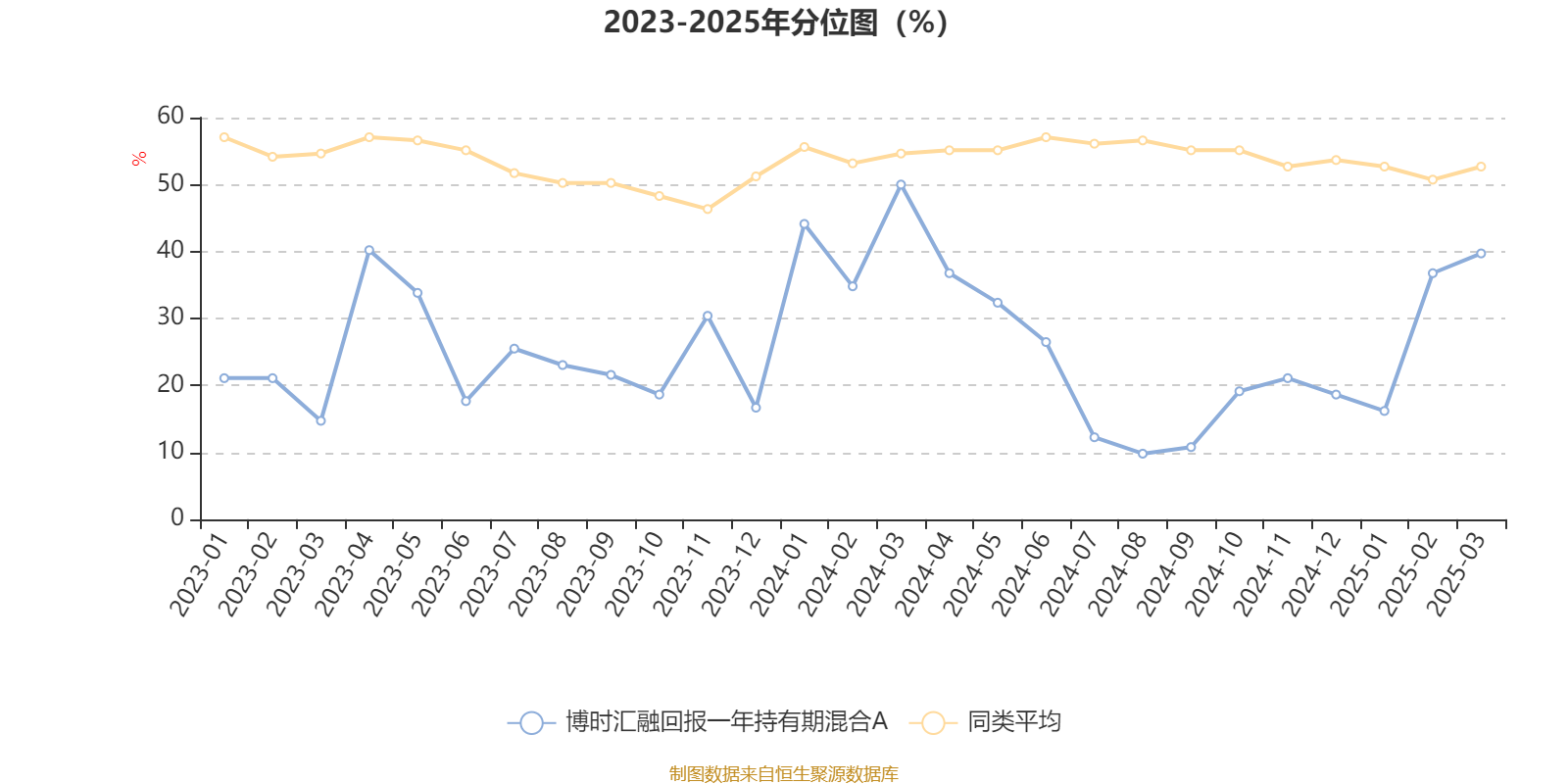 通过所选区间该基金净值增长率分位图,可以观察该基金与同类基金业绩比较情况。图为坐标原点到区间内某时点的净值增长率在同类基金中的分位数。