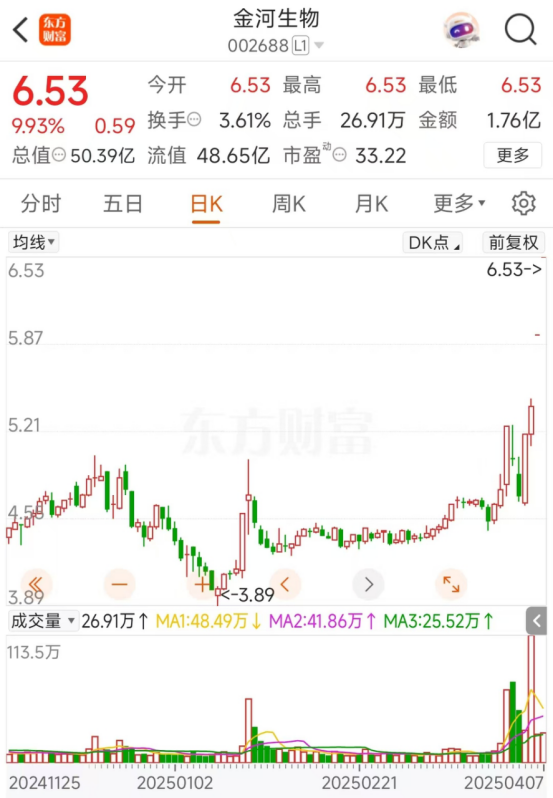 看个股的话,全球金霉素龙头金河生物周一再次一字板涨停,盘中最高封单金额达31.14亿元,收盘时封单金额仍有5.45亿元。