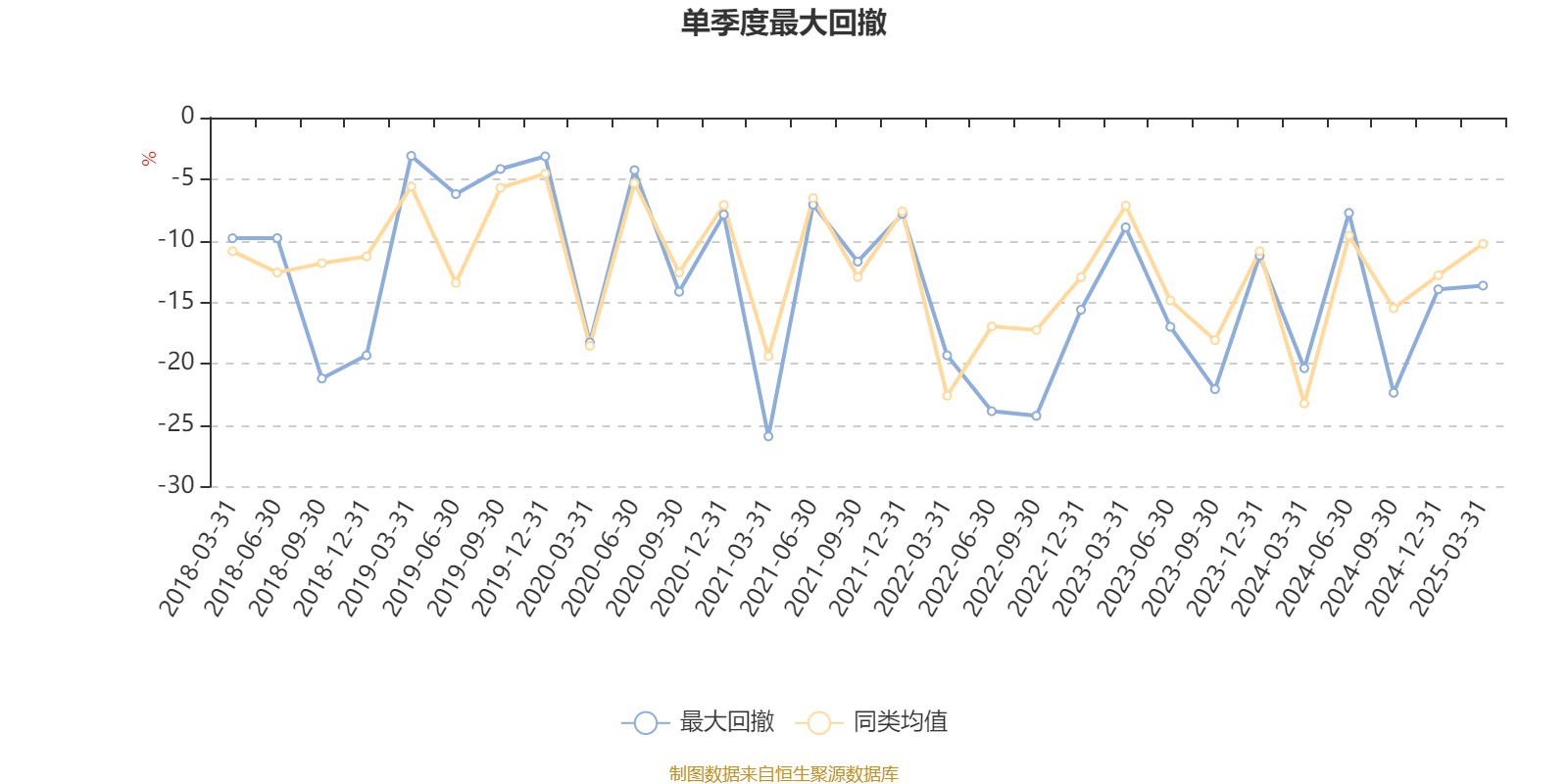 通过所选区间该基金净值增长率分位图,可以观察该基金与同类基金业绩比较情况。图为坐标原点到区间内某时点的净值增长率在同类基金中的分位数。