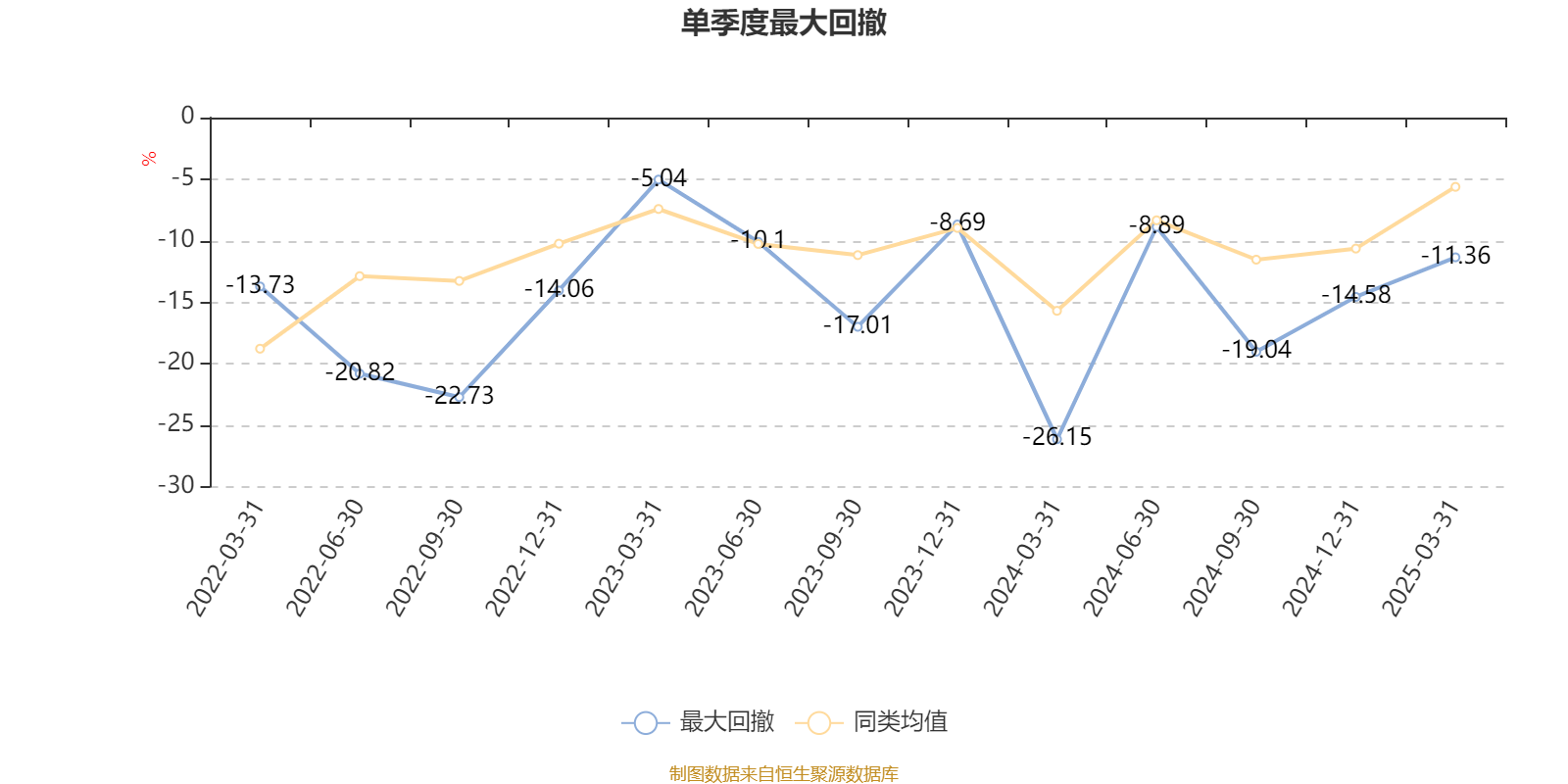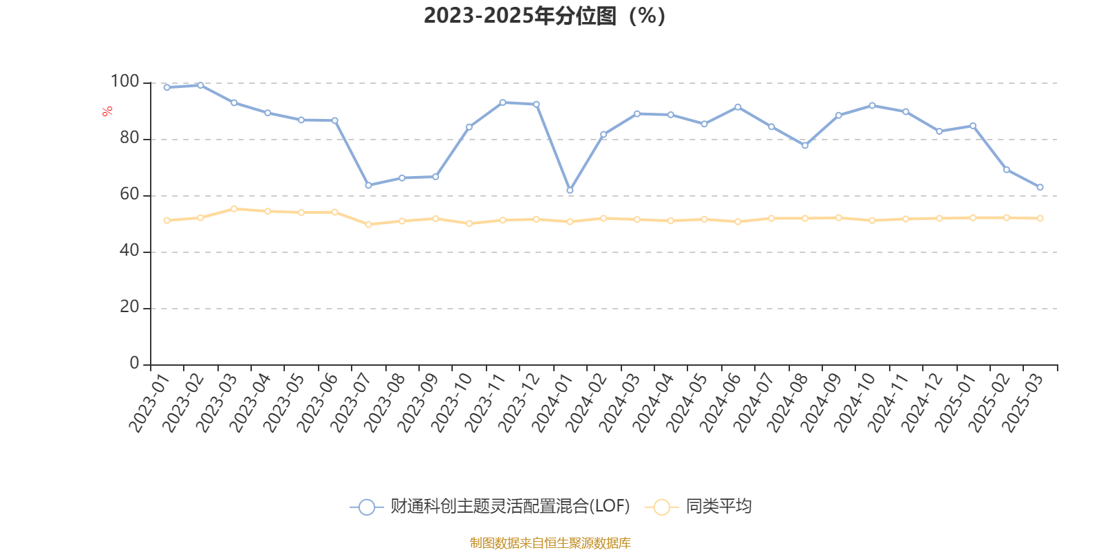 通过所选区间该基金净值增长率分位图,可以观察该基金与同类基金业绩比较情况。图为坐标原点到区间内某时点的净值增长率在同类基金中的分位数。