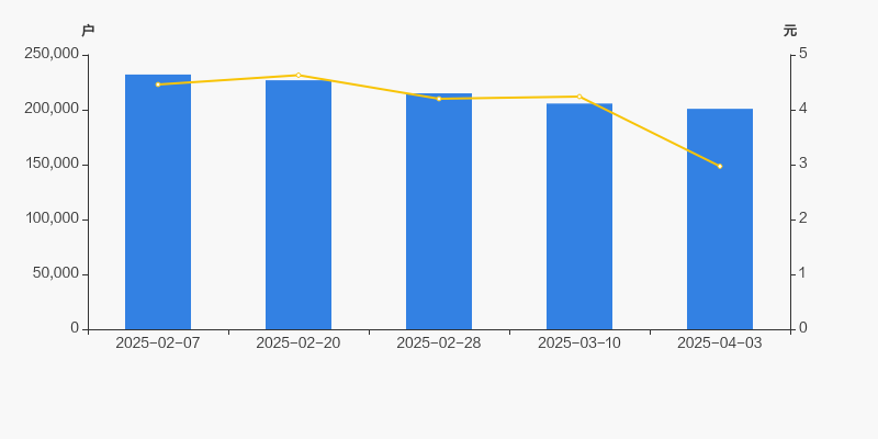 自2025年2月7日以来,公司股东户数连续4期下降,截至目前减幅为13.46%。2025年2月7日至2025年4月3日区间股价下降33.41%。