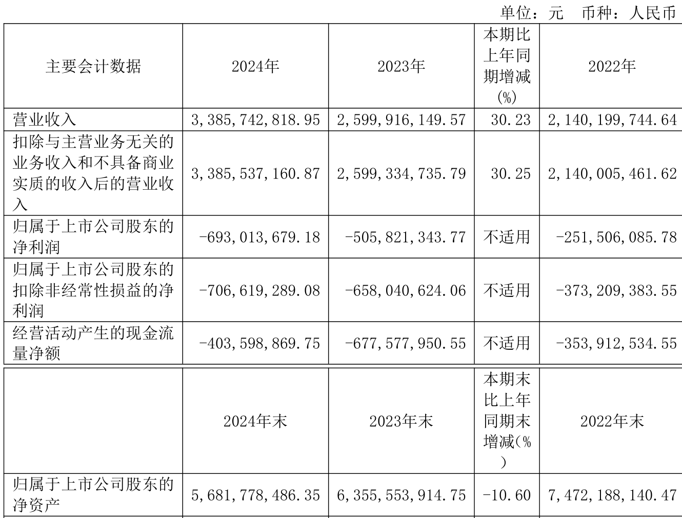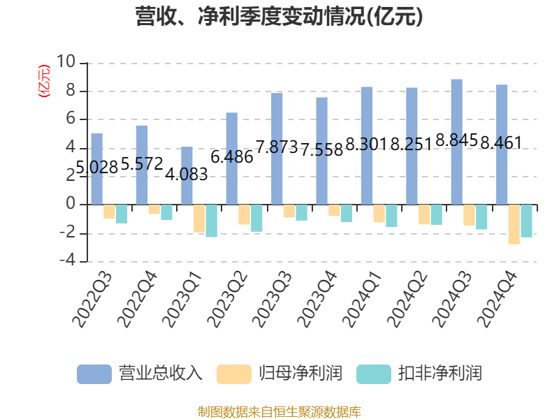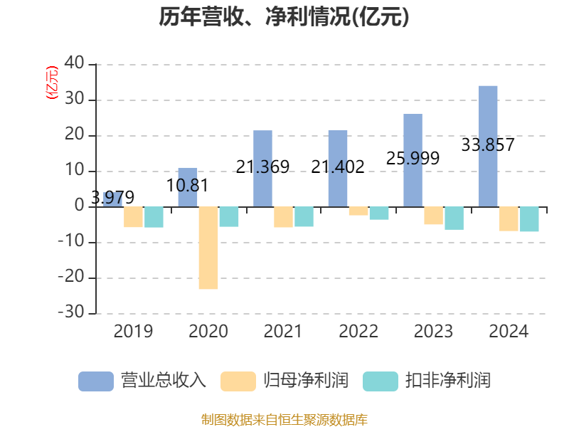 中证智能财讯翱捷科技(688220)4月8日披露2024年年度报告。2024年,公司实现营业总收入33.86亿元,同比增长30.23%;归母净利润亏损6.93亿元,上年同期亏损5.06亿元;扣非净利润亏损7.07亿元,上年同期亏损6.58亿元;经营活动产生的现金流量净额为-4.04亿元,上年同期为-6.78亿元;报告期内,翱捷科技基本每股收益为-1.7元,加权平均净资产收益率为-11.56%。