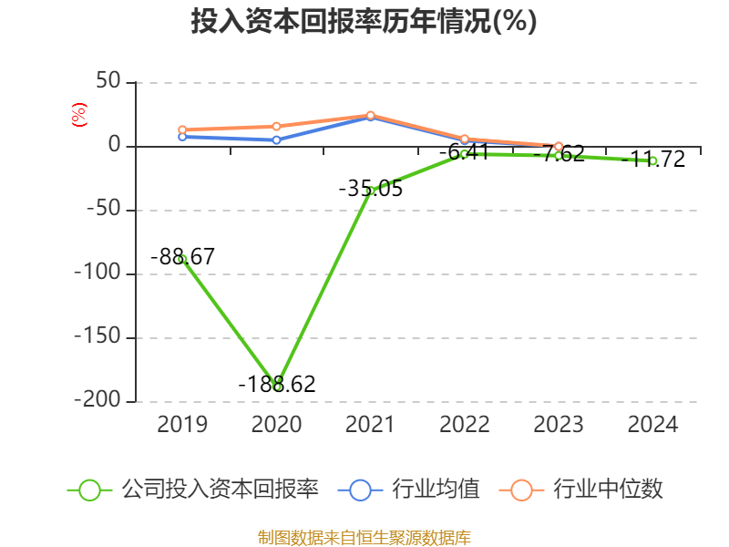 数据显示,2024年公司加权平均净资产收益率为-11.56%,较上年同期下降4.29个百分点。公司2024年投入资本回报率为-11.72%,较上年同期下降4.1个百分点。
