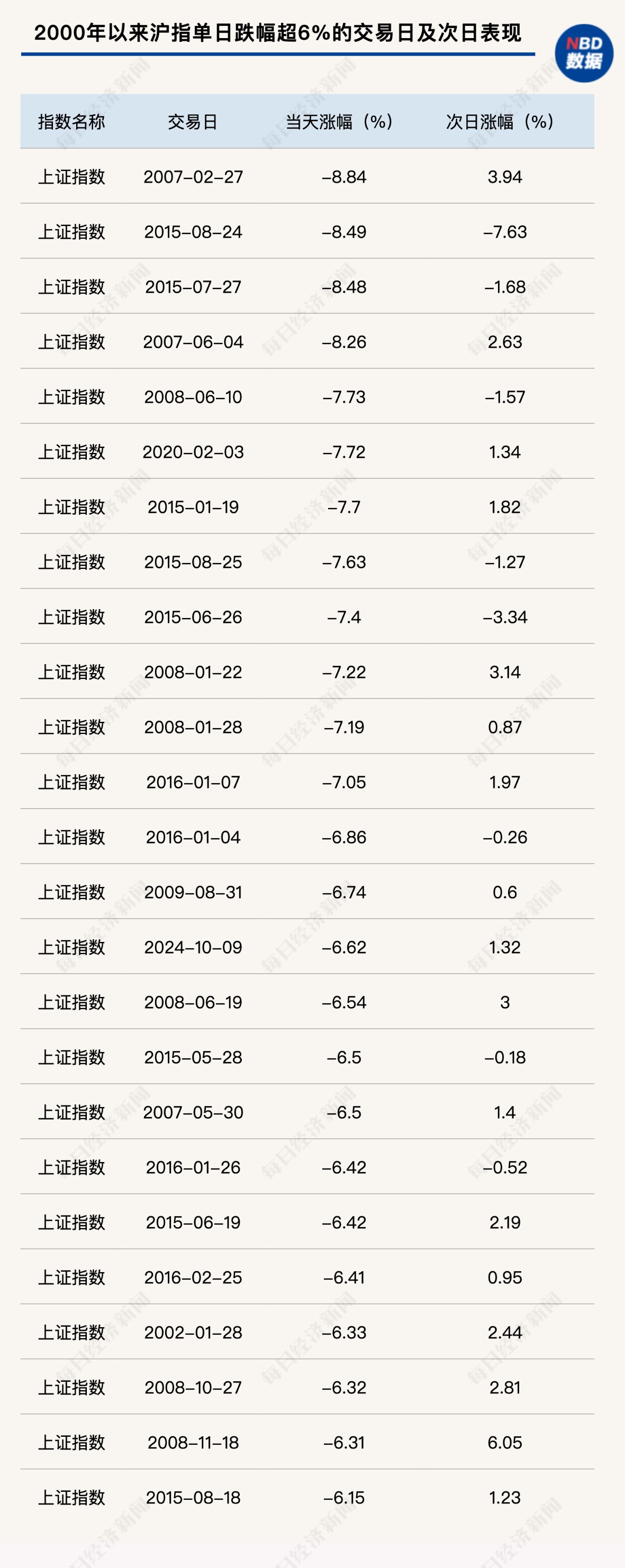即使在2008年等弱市环境中,大盘单日大跌超6%之后,第二天也大多会跌幅收窄,或者出现反弹。