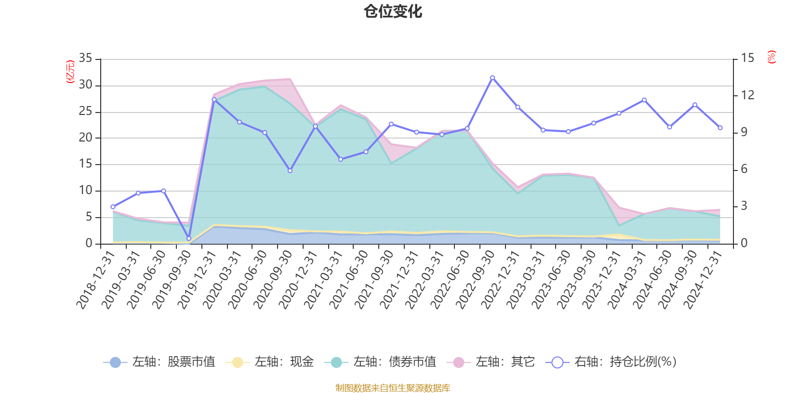 据定期报告数据统计,近三年平均股票仓位为10.28%,同类平均为18.74%。2022年三季度末基金达到13.48%的最高仓位,2019年三季度末最低,为0.44%。
