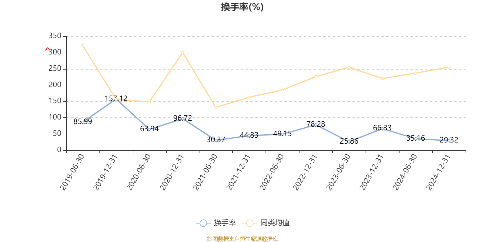 截至2024年12月31日,基金最近一年换手率约64.19%,持续5年低于同类均值。