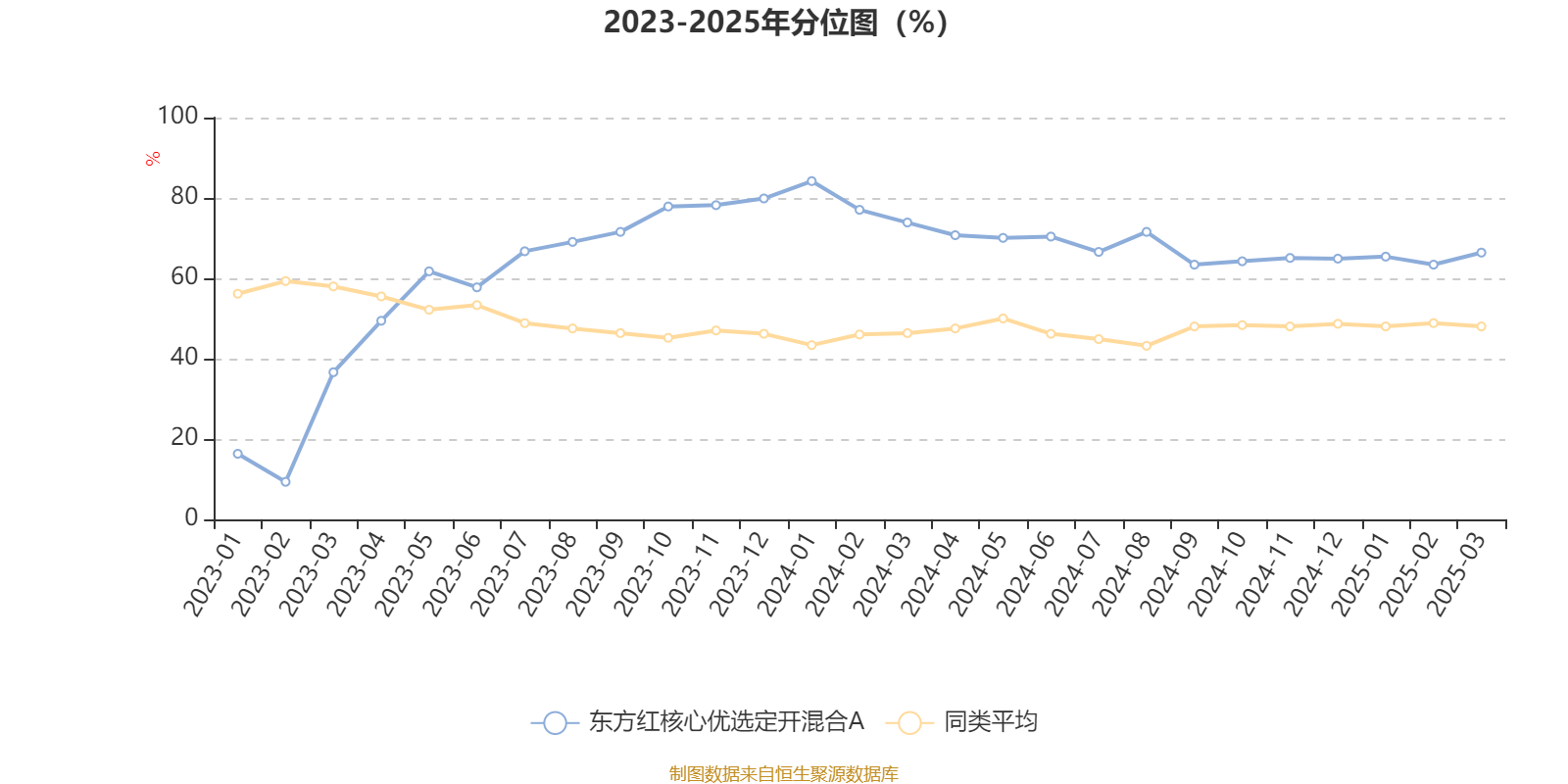 通过所选区间该基金净值增长率分位图,可以观察该基金与同类基金业绩比较情况。图为坐标原点到区间内某时点的净值增长率在同类基金中的分位数。