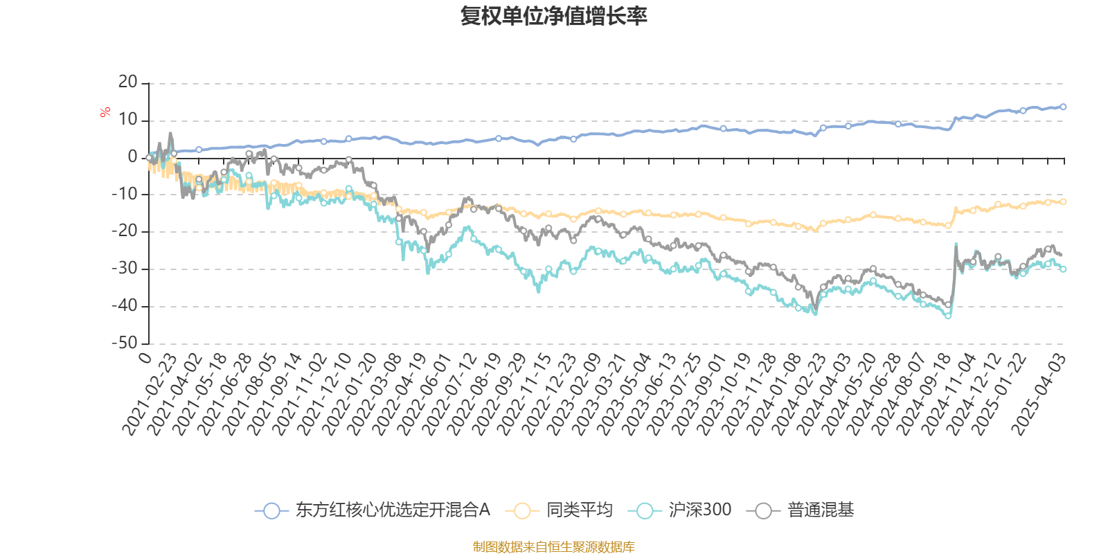 截至4月3日,东方红核心优选定开混合A近三个月复权单位净值增长率为1.04%,位于同类可比基金320/670;近半年复权单位净值增长率为2.55%,位于同类可比基金227/670;近一年复权单位净值增长率为4.76%,位于同类可比基金318/667;近三年复权单位净值增长率为9.17%,位于同类可比基金139/559。