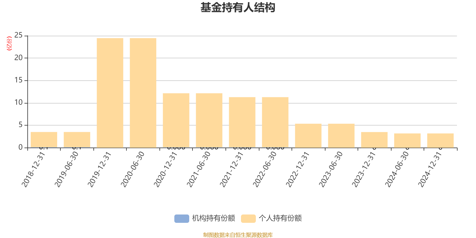 截至2024年12月31日,基金持有人共计4517户,合计持有3.19亿份。其中管理人员工持有35.45万份,占比0.11%,机构持有份额占比0.00%,个人投资者占比100.00%。