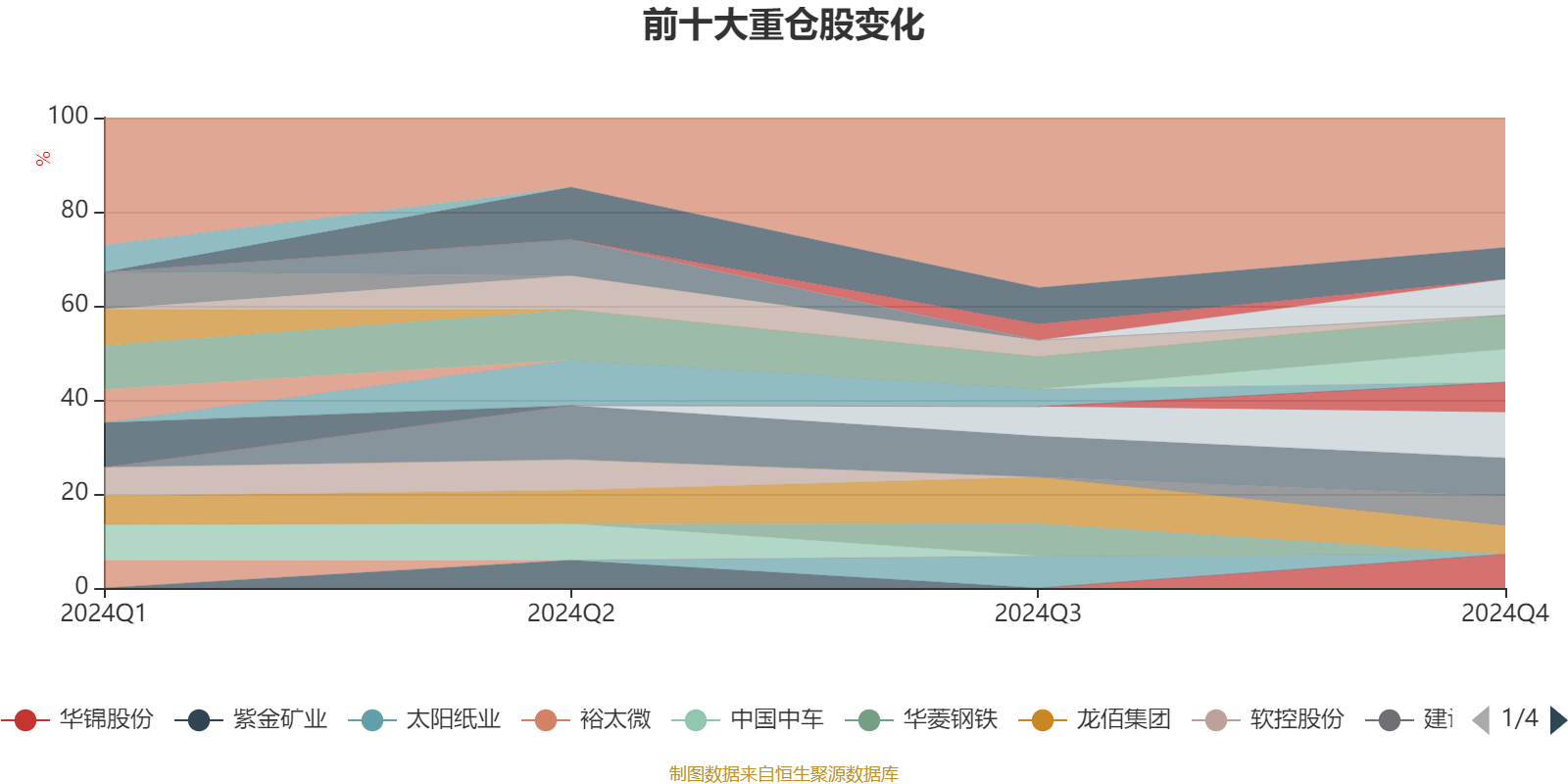 该基金持股集中度较高。截至2024年末,基金十大重仓股分别是万华化学、中国船舶、亚香股份、中国重工、华锦股份、荃银高科、中船防务、工商银行、建设银行、龙佰集团。