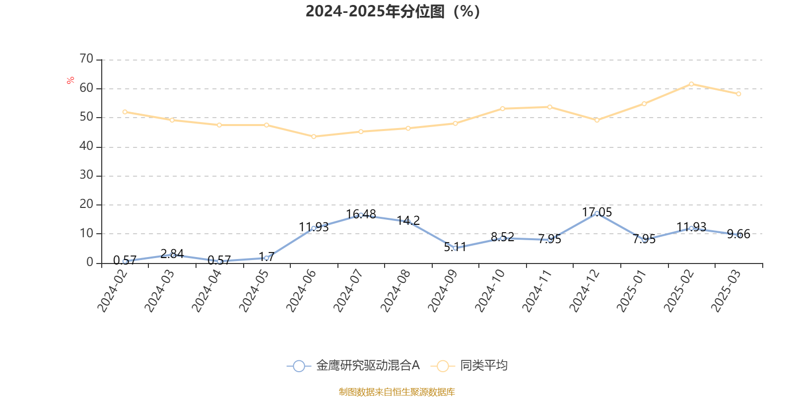 通过所选区间该基金净值增长率分位图,可以观察该基金与同类基金业绩比较情况。图为坐标原点到区间内某时点的净值增长率在同类基金中的分位数。
