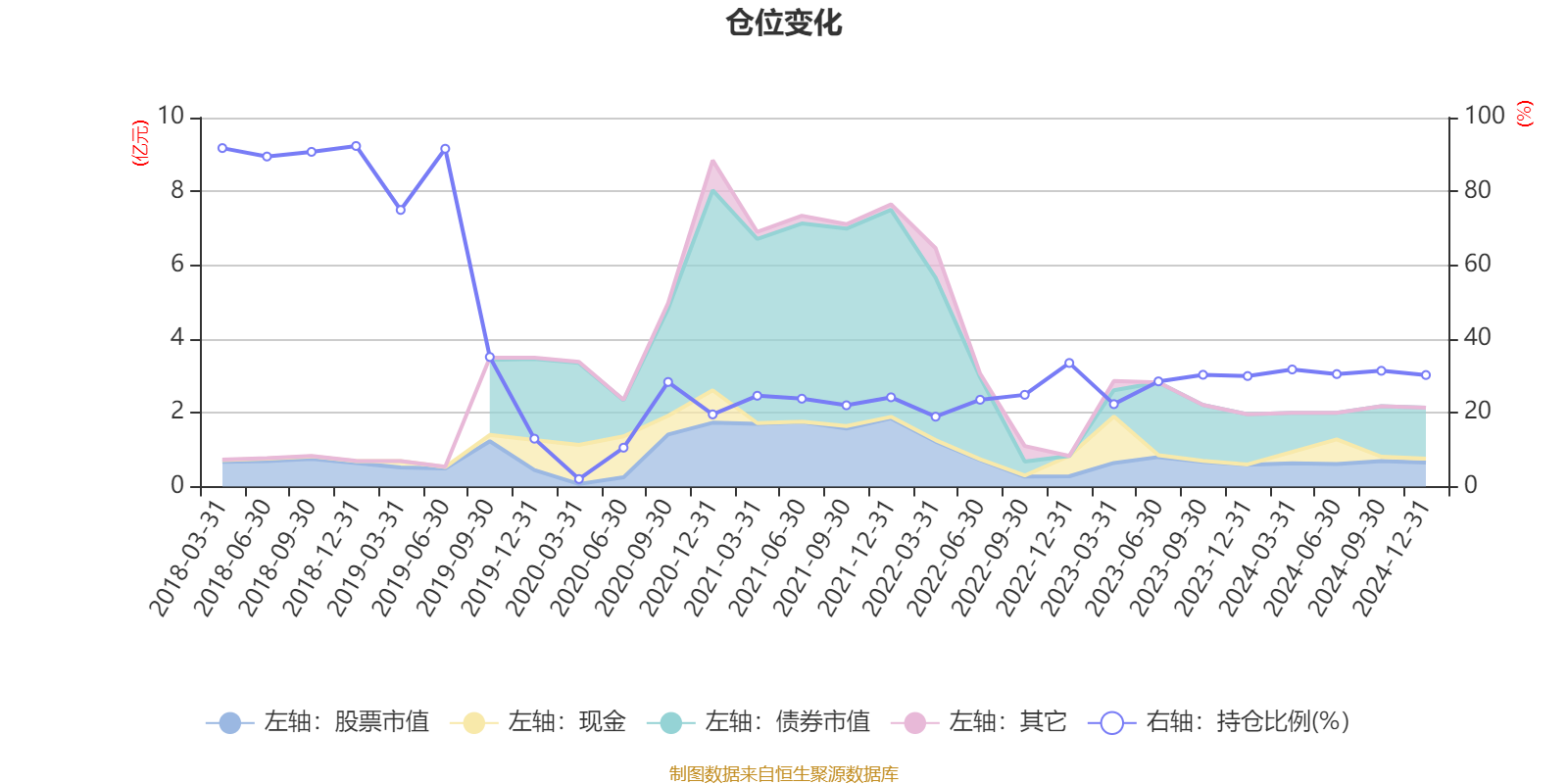 据定期报告数据统计,近三年平均股票仓位为27.98%,同类平均为18.51%。2018年末基金达到92.31%的最高仓位,2020年一季度末最低,为2.04%。