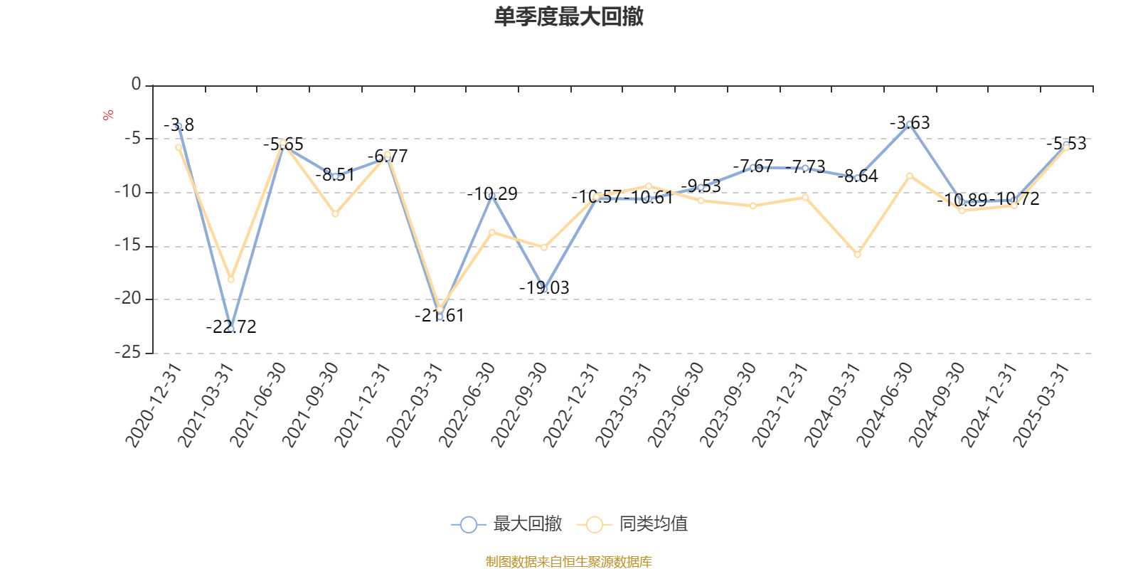 通过所选区间该基金净值增长率分位图,可以观察该基金与同类基金业绩比较情况。图为坐标原点到区间内某时点的净值增长率在同类基金中的分位数。