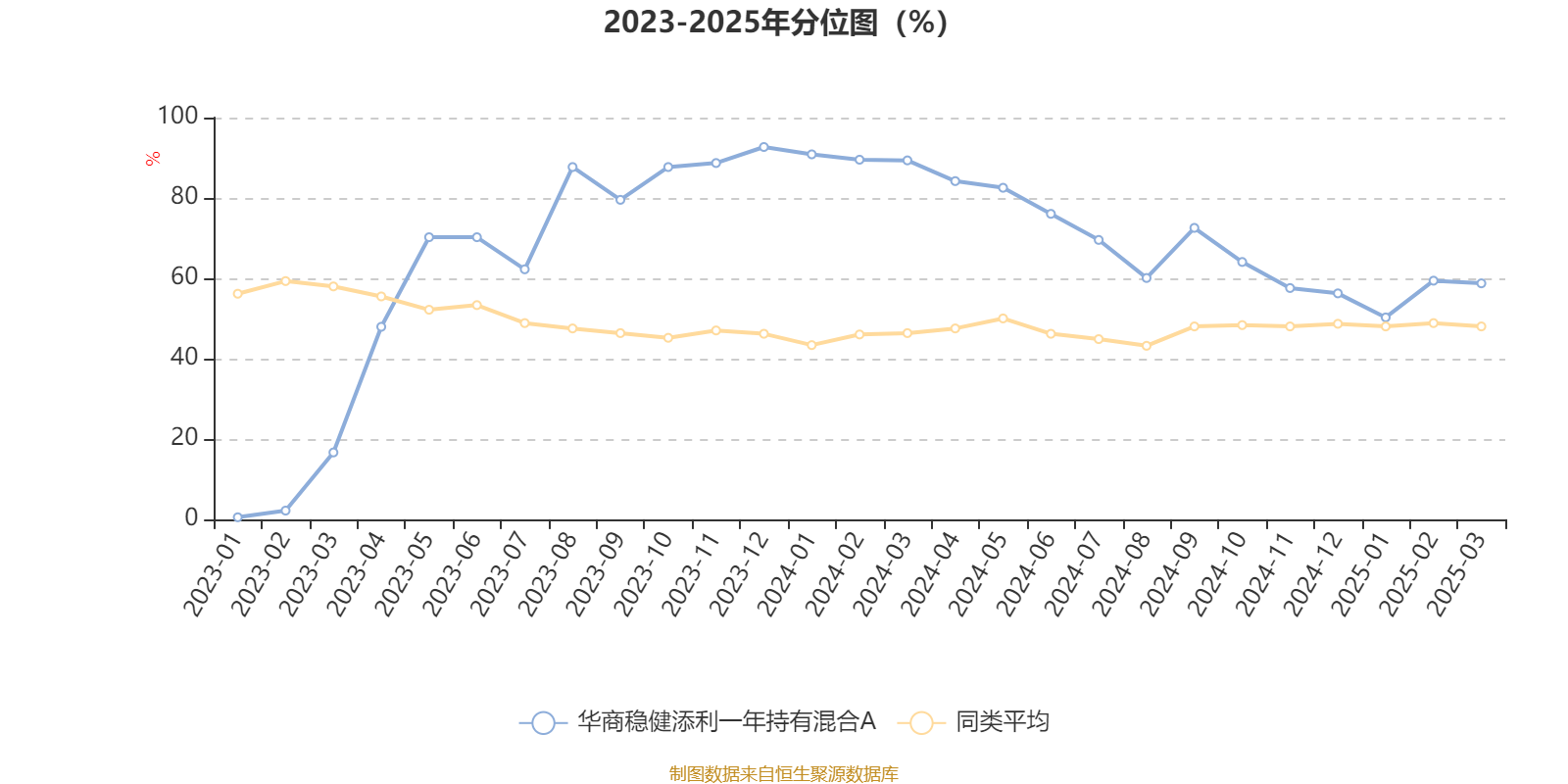 通过所选区间该基金净值增长率分位图,可以观察该基金与同类基金业绩比较情况。图为坐标原点到区间内某时点的净值增长率在同类基金中的分位数。