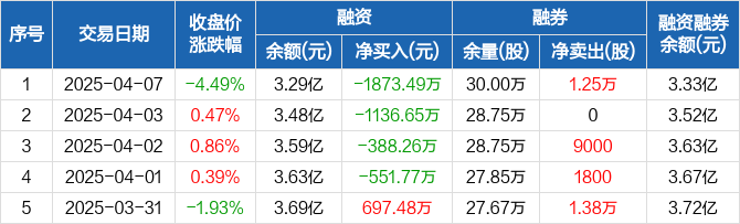圆通速递融资融券信息显示,2025年4月7日融资净偿还1873.49万元;融资余额3.29亿元,较前一日下降5.39%。