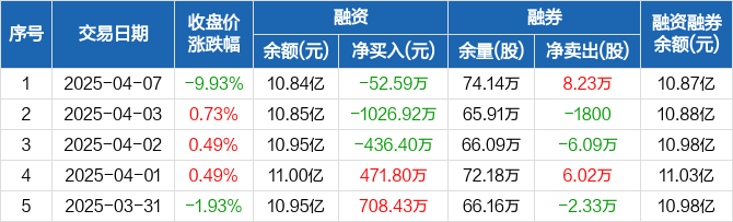 中原证券融资融券信息显示,2025年4月7日融资净偿还52.59万元;融资余额10.84亿元,较前一日下降0.05%