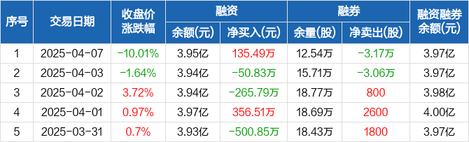 应流股份融资融券信息显示,2025年4月7日融资净买入135.49万元;融资余额3.95亿元,较前一日增加0.34%。