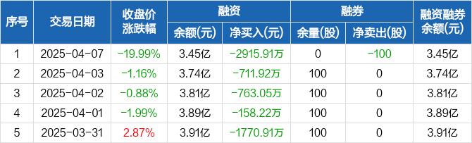 依米康融资融券信息显示,2025年4月7日融资净偿还2915.91万元;融资余额3.45亿元,较前一日下降7.79%。