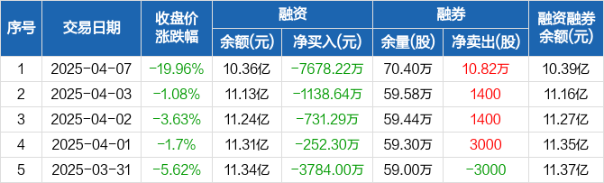 融资方面,当日融资买入7108.1万元,融资偿还1.48亿元,融资净偿还7678.22万元,连续13日净偿还累计3.26亿元。融券方面,融券卖出13.83万股,融券偿还3.01万股,融券余量70.4万股,融券余额310.46万元。融资融券余额合计10.39亿元。