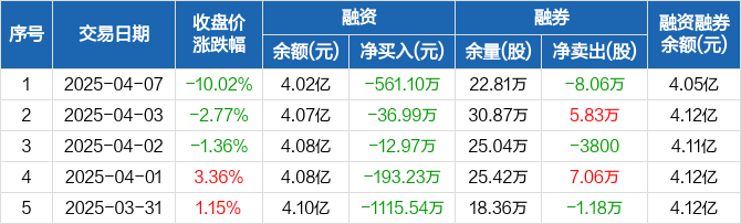 中材科技融资融券信息显示,2025年4月7日融资净偿还561.1万元;融资余额4.02亿元,创近一年新低,较前一日下降1.38%。