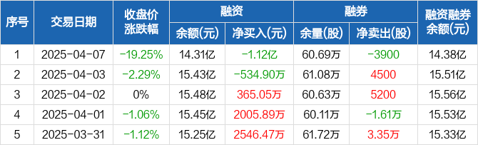 神州泰岳融资融券信息显示,2025年4月7日融资净偿还1.12亿元;融资余额14.31亿元,较前一日下降7.24%。