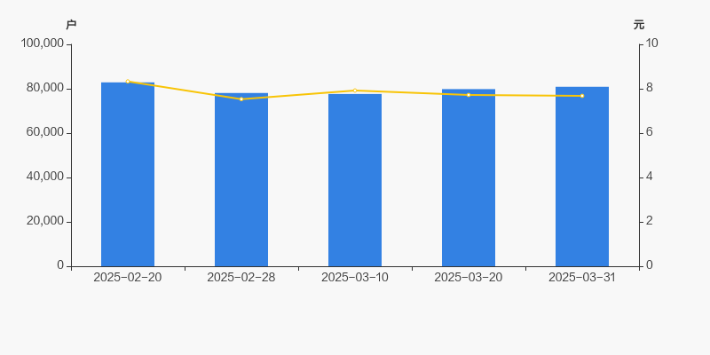 2025年2月20日至今,公司股东户数有所下降,区间跌幅为2.39%。2025年2月20日至2025年3月31日区间股价下降7.79%。