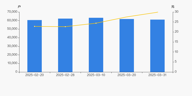 2025年2月20日至今,公司股东户数有所增长,区间涨幅为0.90%。2025年2月20日至2025年3月31日区间股价上涨30.95%。
