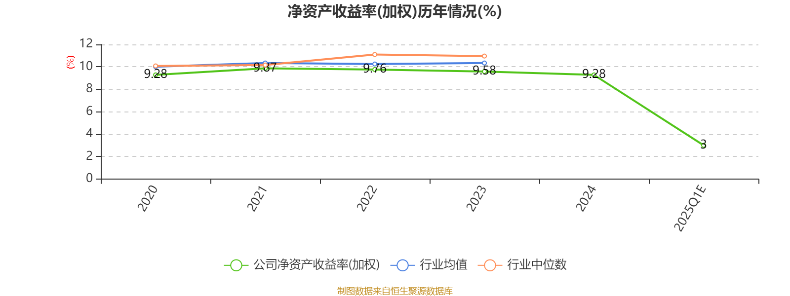 数据显示,2025年一季度公司加权平均净资产收益率为3%,较上年同期下降0.0025个百分点。