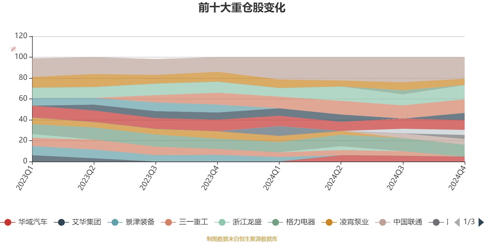 该基金持股集中度较高,近2年前十大重仓股集中度长期超过60%。截至2024年末,基金十大重仓股分别是中国移动、美的集团、格力电器、豪迈科技、中国海洋石油、中兴通讯、中国联通、福耀玻璃、华域汽车、阿里巴巴-W。