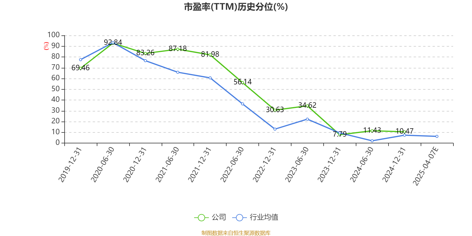以本次披露业绩预告均值计算,公司近年市盈率(TTM)图如下所示:
