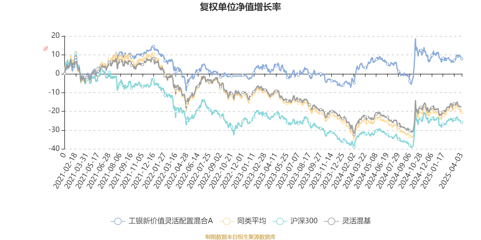 截至4月3日,工银新价值灵活配置混合A近三个月复权单位净值增长率为-0.64%,位于同类可比基金833/918;近半年复权单位净值增长率为-7.28%,位于同类可比基金802/918;近一年复权单位净值增长率为1.39%,位于同类可比基金626/918;近三年复权单位净值增长率为5.63%,位于同类可比基金122/901。
